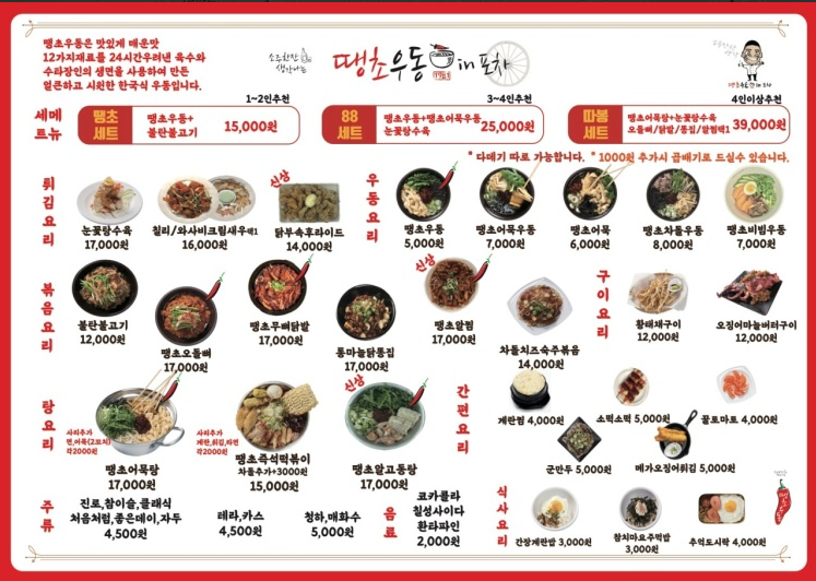 땡초우동+땡초어묵우동+눈꽃탕수육 = 25,000원