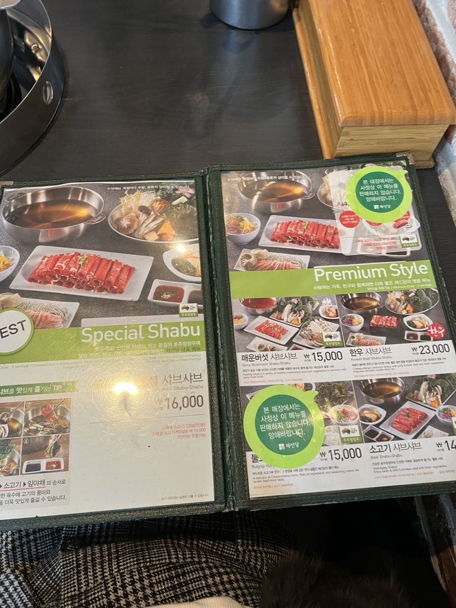나는 그냥 샤브샤브집은 무한리필 가는게 마음 편한것같다 원하는 야채랑 재료 원하는데로 넣고 먹기..