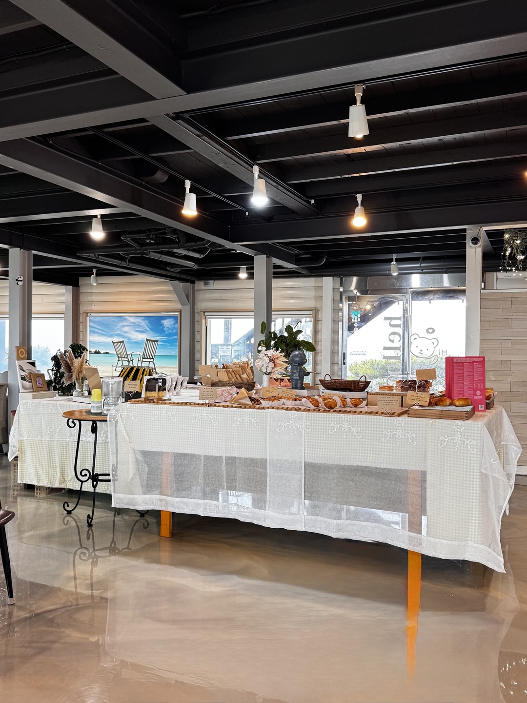 카페 창밖으로 바다가 보이는 테라스 공간이 매력 포인트.