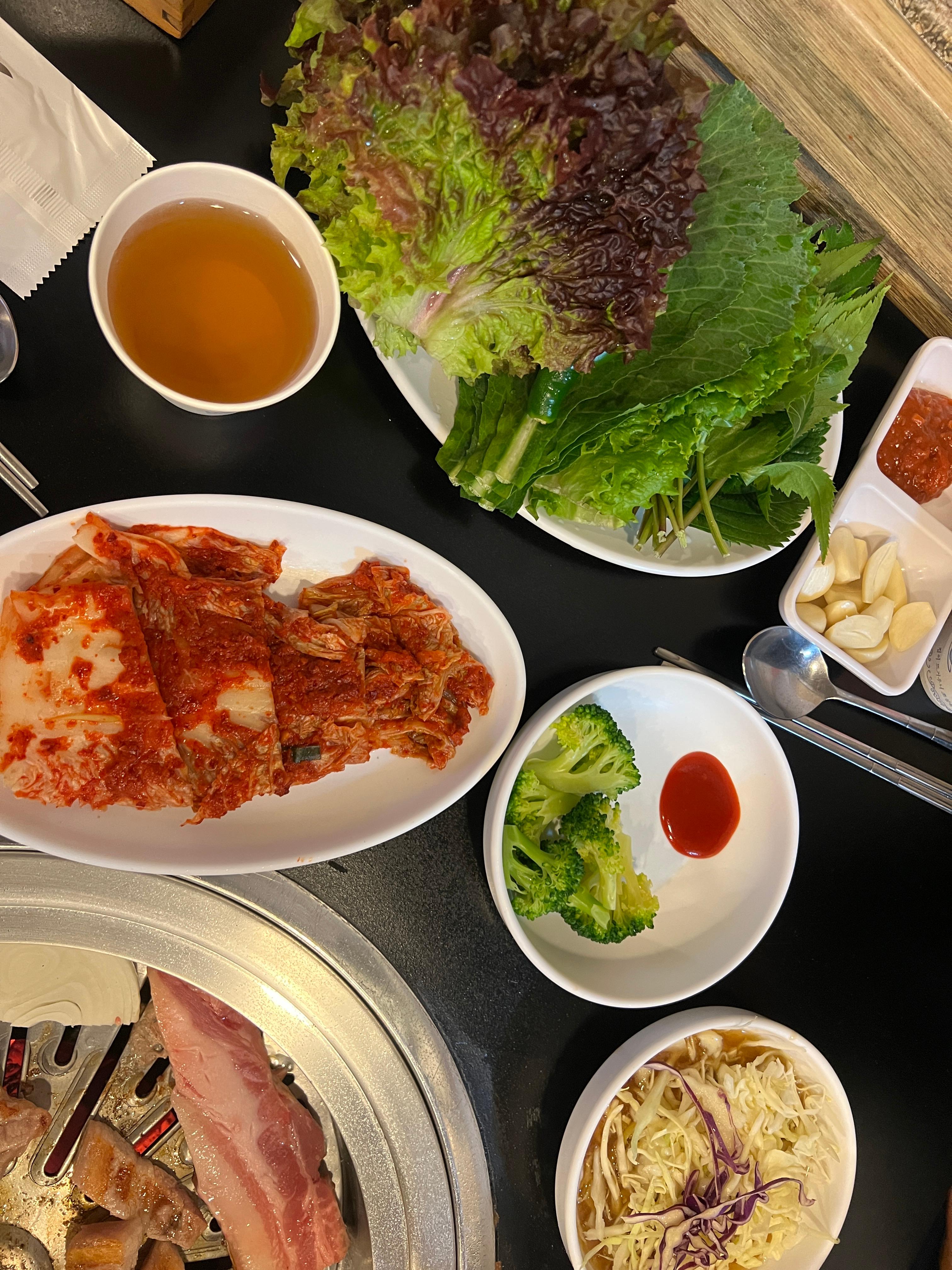 게다가 같이 나온 쌈채소, 김치, 샐러드도 다 신선했어요. 쌈 싸먹으면 존맛탱이라는~! 😋