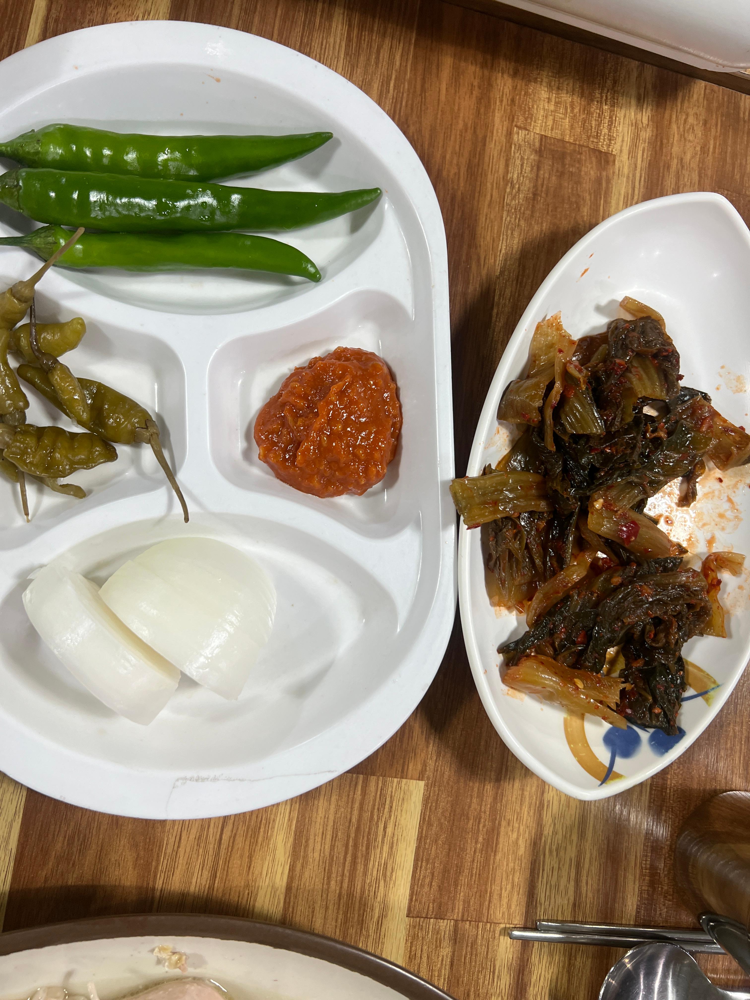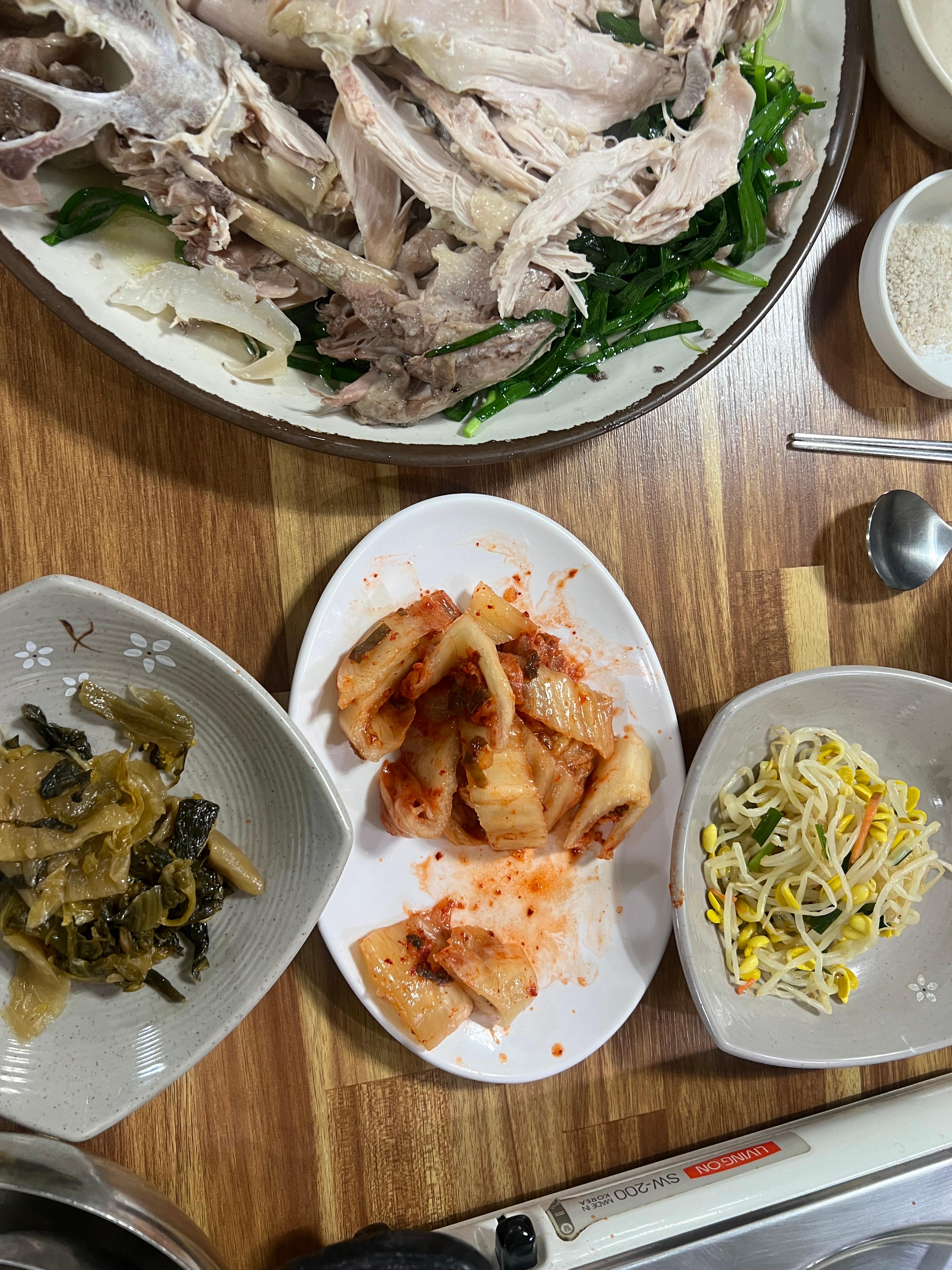 콩나물무침과 묵은 갓김치도 백숙과 조화가 좋았습니다.