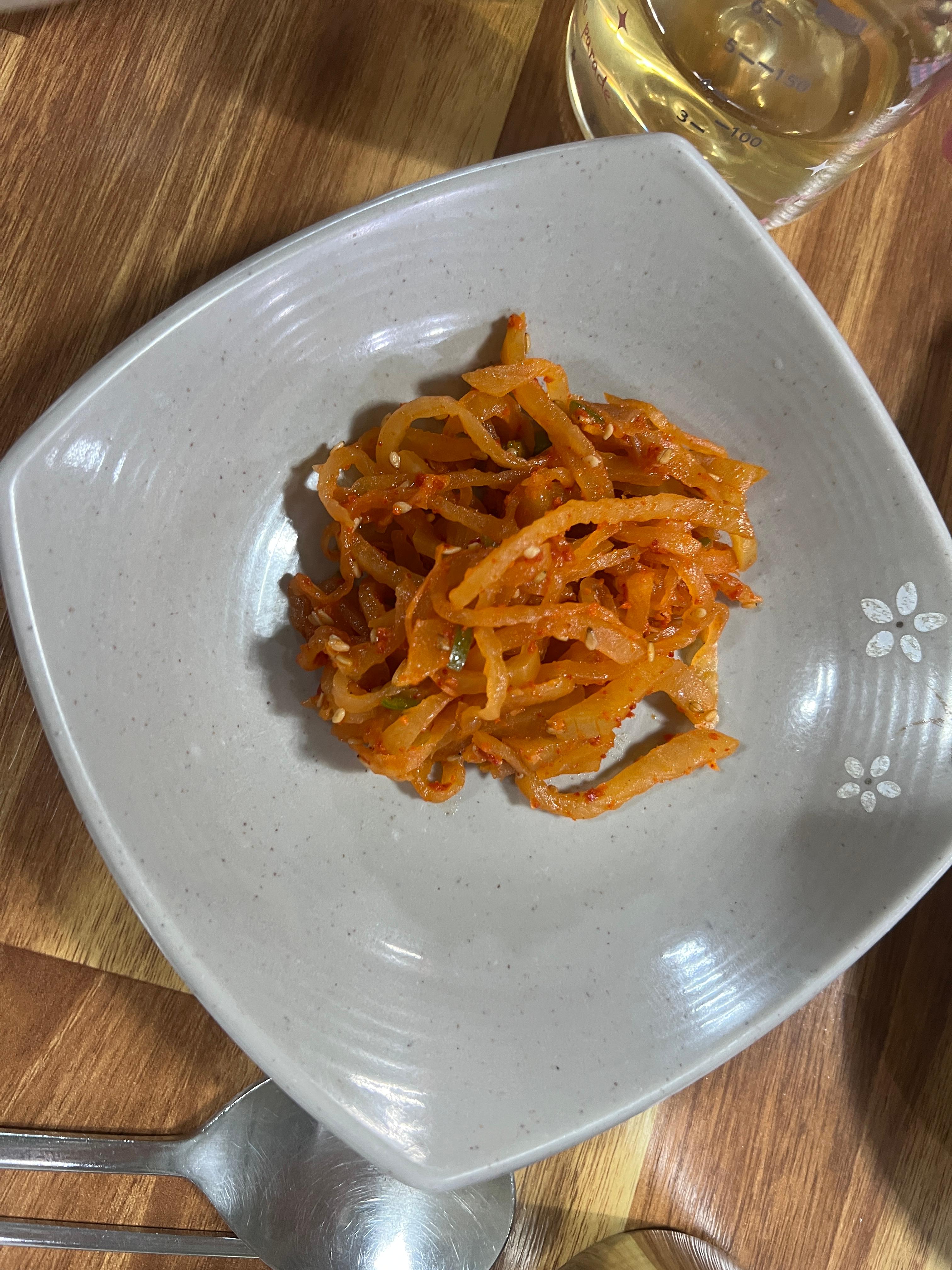 무말랭이는 아삭하고 매콤