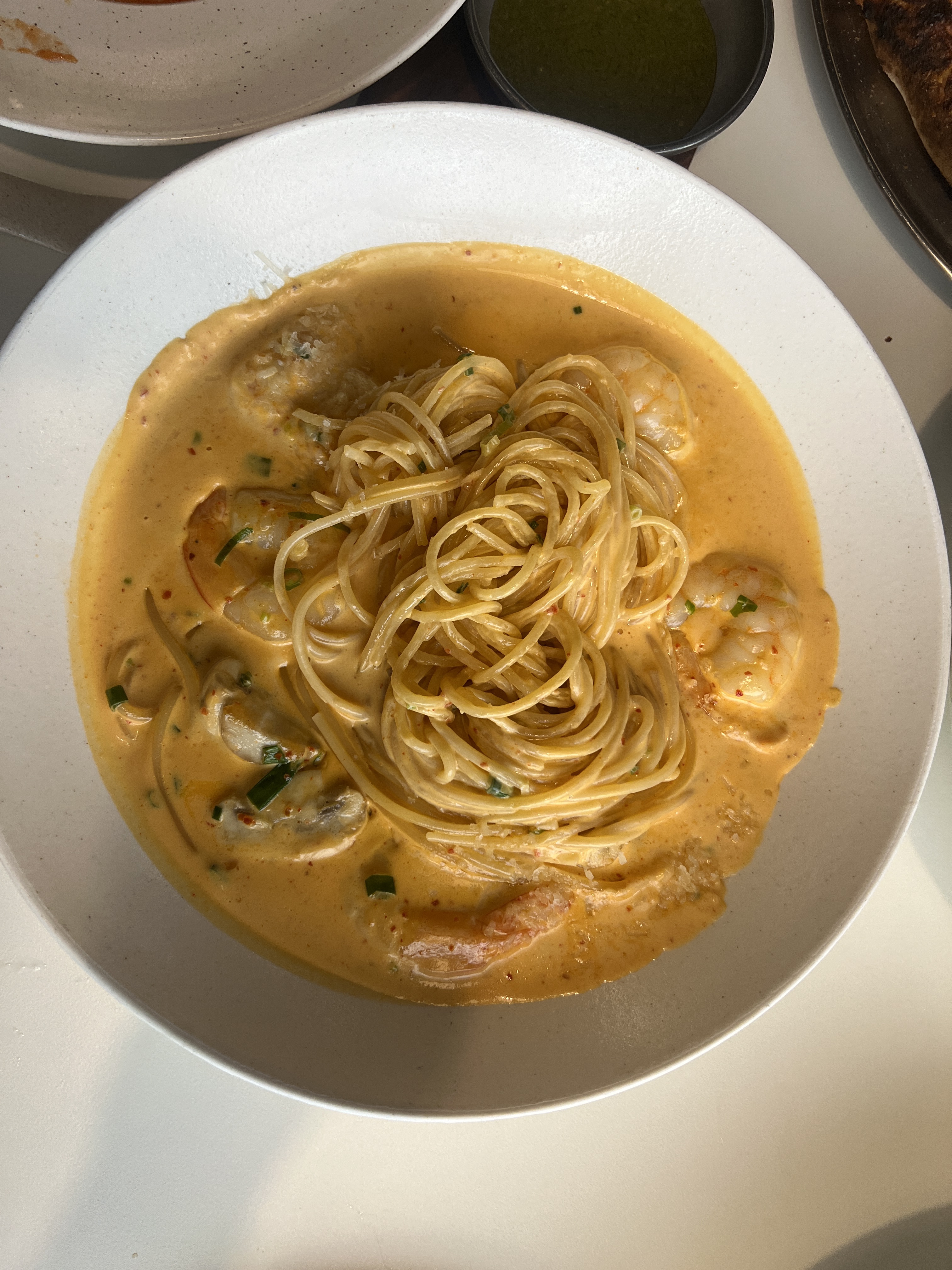 살짝 매콤한 로제 베이스에 탱글한 새우, 고소한 크림이 조화로워요.