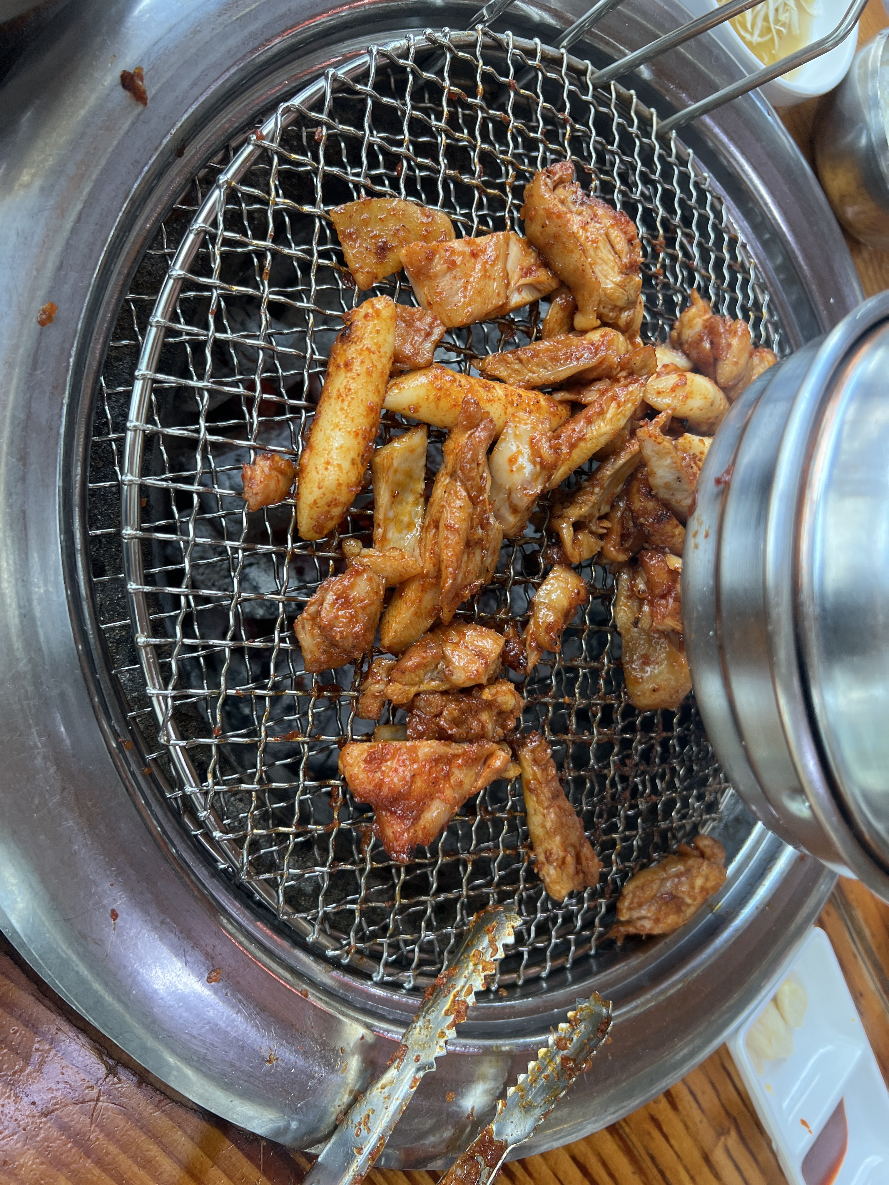 숯불 위에 구워지는 닭갈비 비주얼은 좋았어요.
