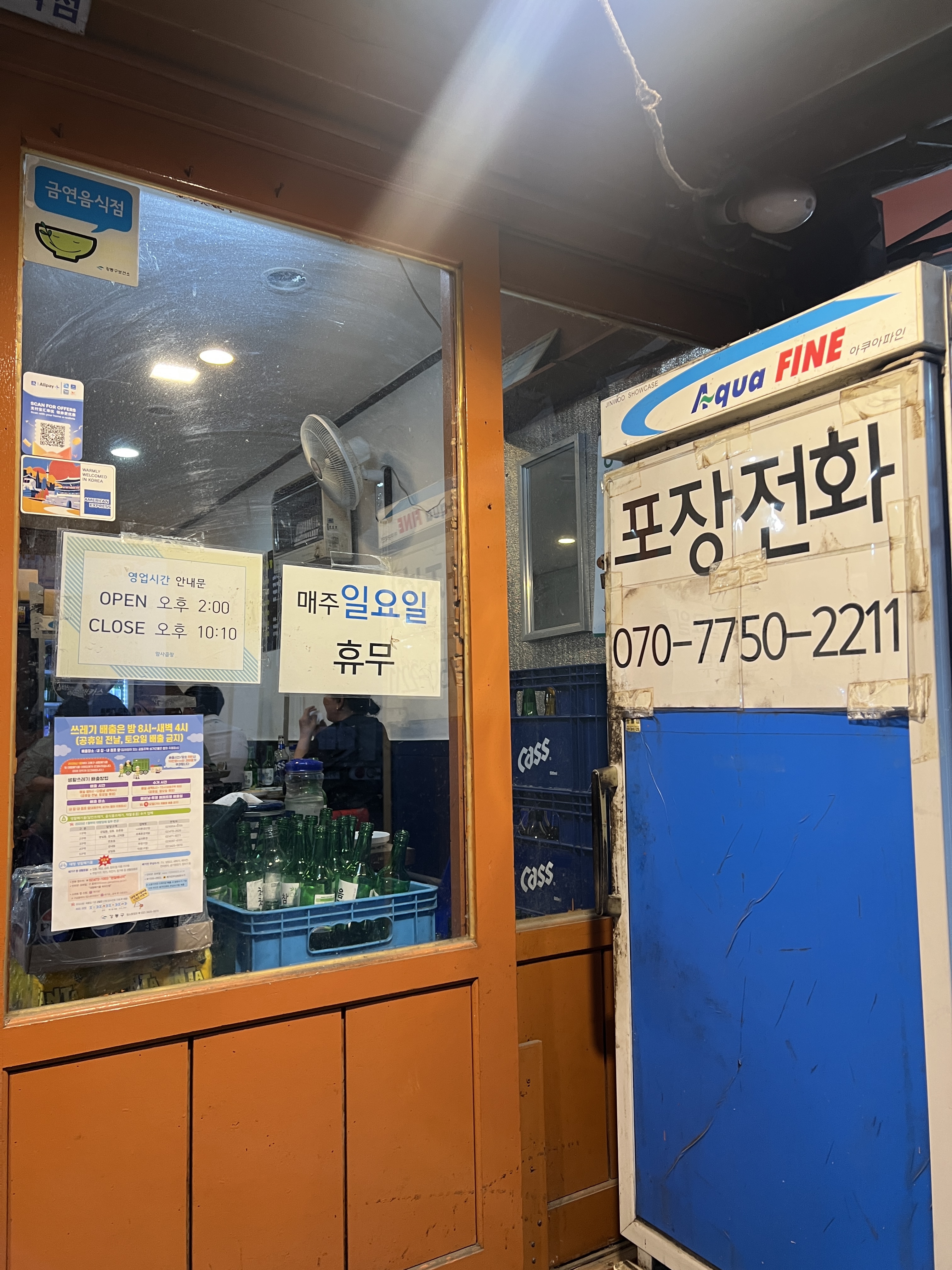 매주 일요일은 휴무, 운영시간 오후 2시~10시 10분
