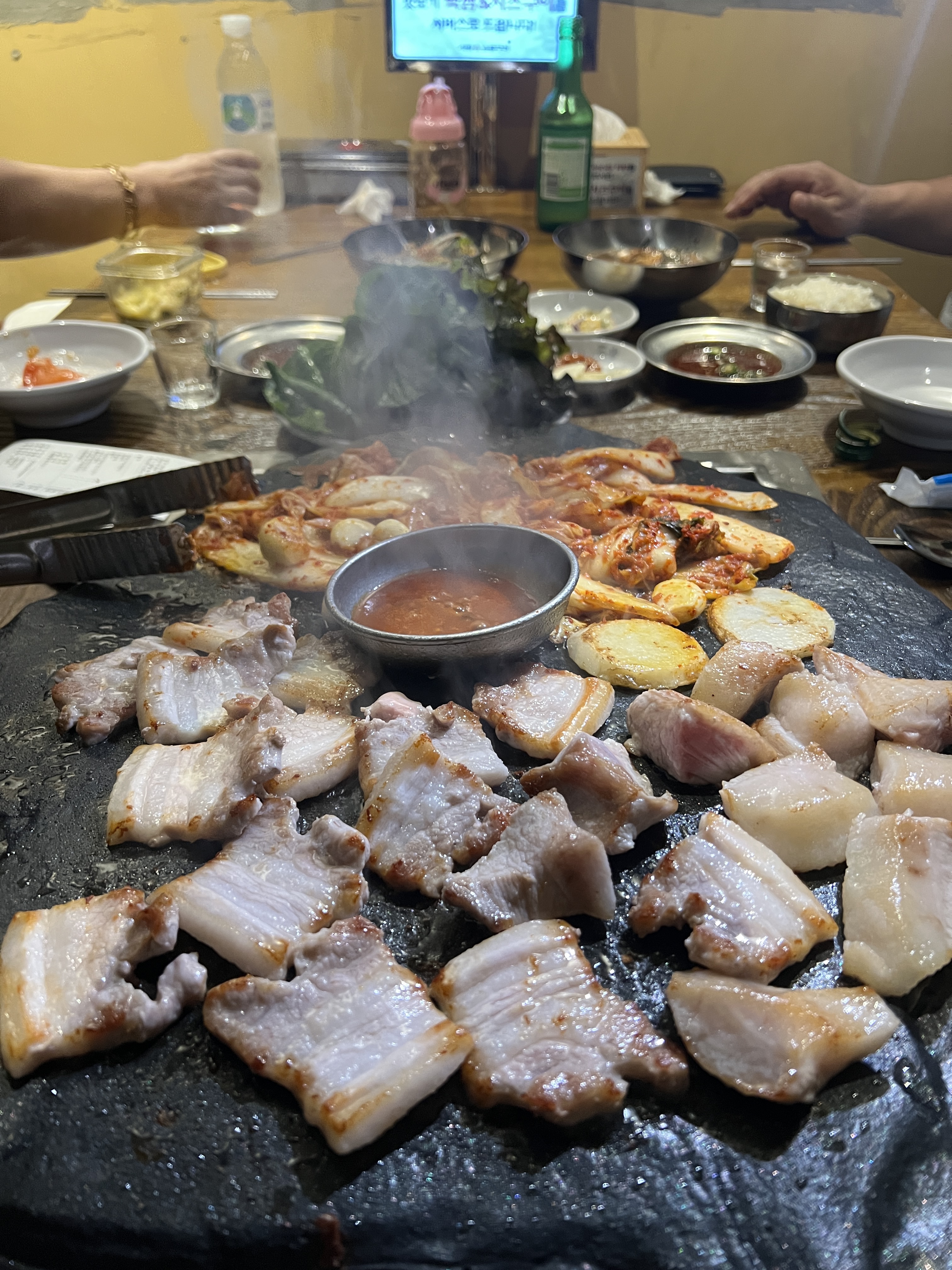 생삼겹 + 돌판 + 구운김치 = 무조건 성공 조합