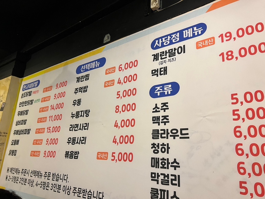 현고대 닭발 메뉴판!!!