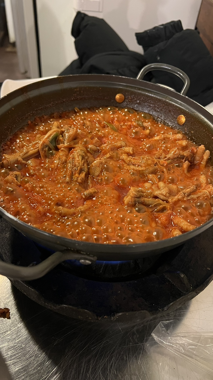 지글지글 보글보글 열심히 끓여줘야 닭발에 국물도 배기고 더 맛있어지쥬~?