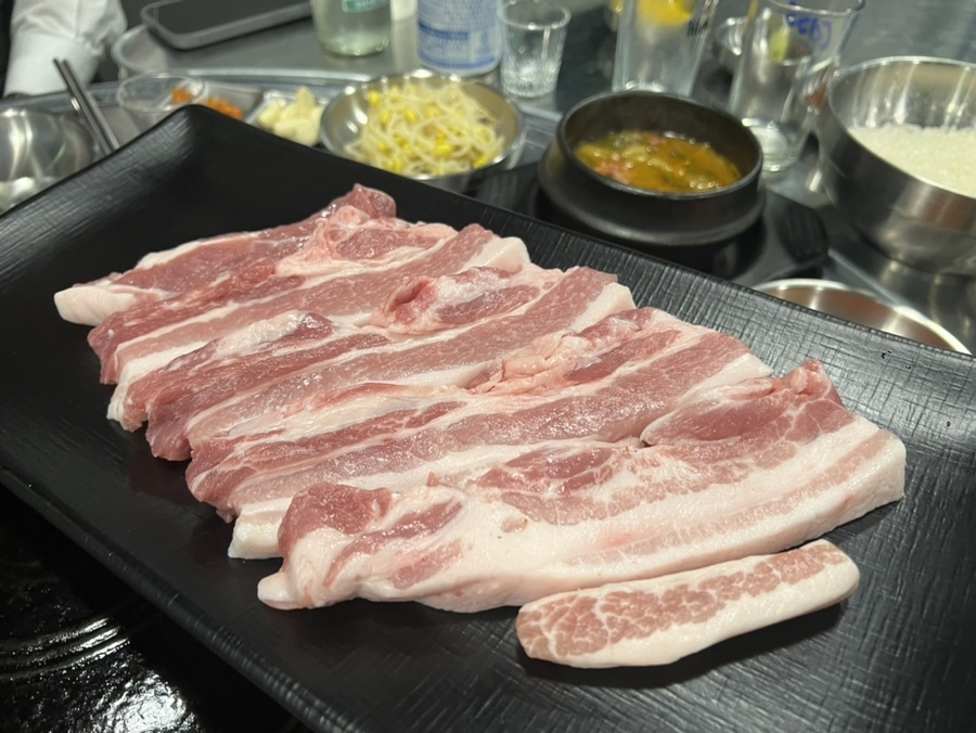 생삼겹 한판 등장잉요!! 신선도가 엄청 좋아보여~ 적당한 살코기에 적당한 비계 너무조아~