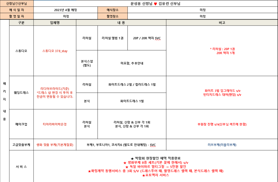 이것저것 유튜브보고 공부하고 결혼식에 대한 눈이 넓어지면서 스튜디오 빼고는 다 바꼈다..