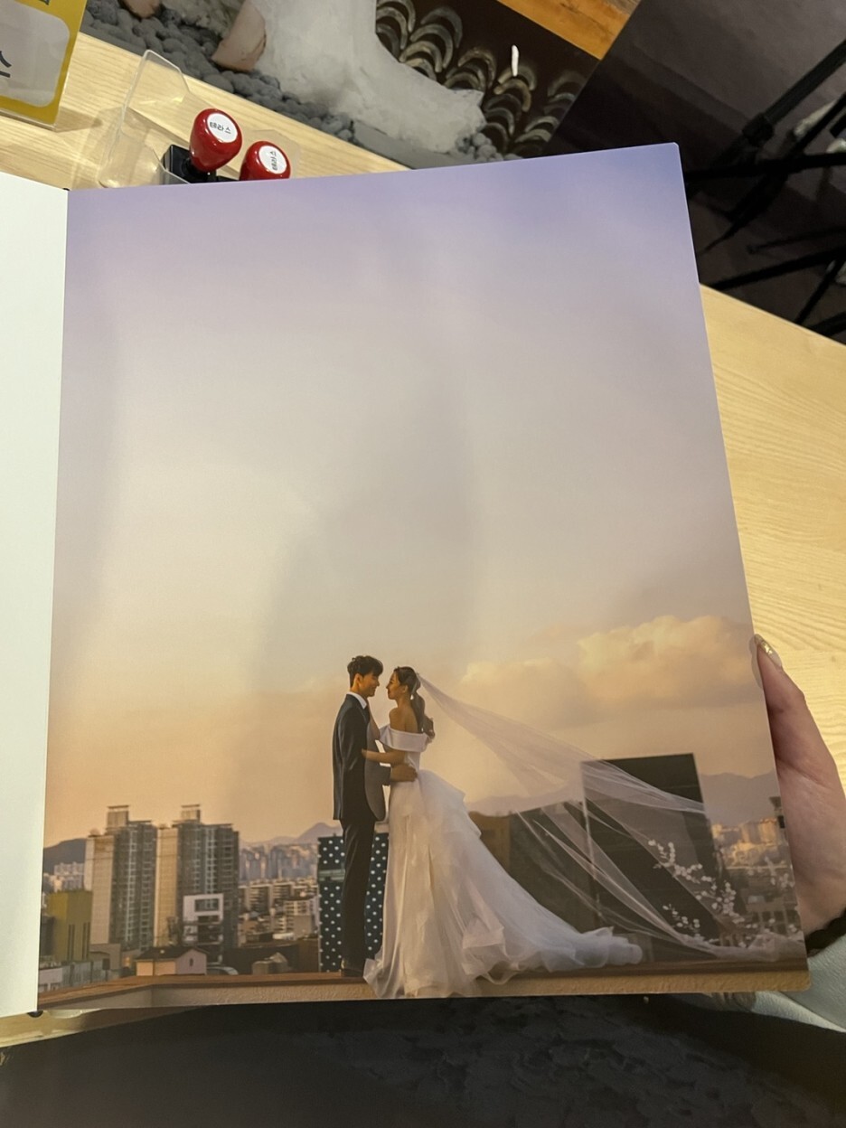 입장하기 전에 홀에 크게 앨범들이 전시되어있다.스튜디오마다 결혼 앨범예시용 하나씩을 쭈~욱 구경하다가