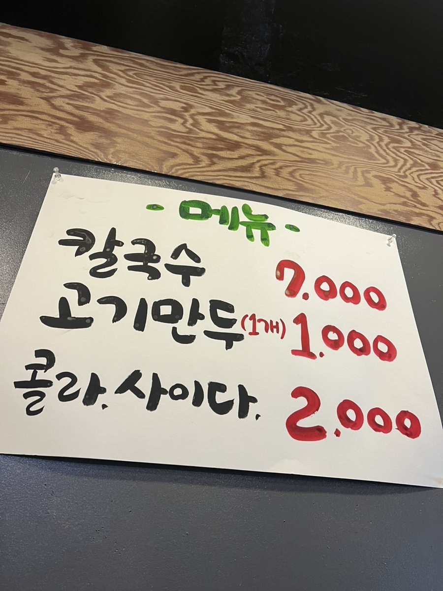 메뉴판은 너무 단촐해서 깜놀…진짜 칼국수 전문점이라 딱 칼국수만 판다..
