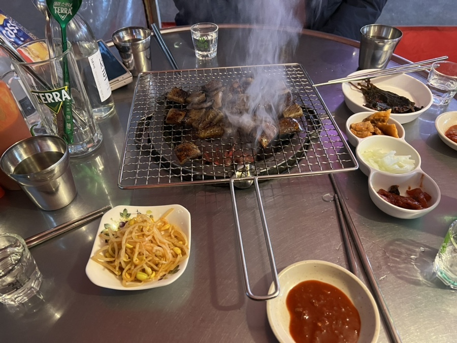 초반에는 초벌로 해주셔서 나오면 그걸 또 한번 살짝 구우면서 먹어주는게