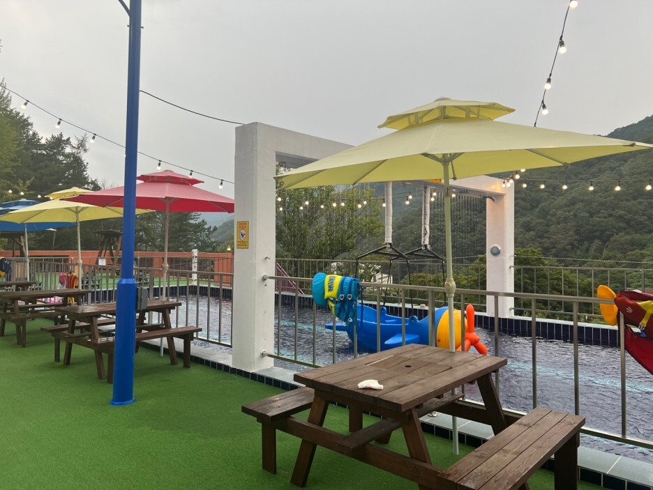 애기들은 수영장에서 놀고~어른들은 파라솔에서 휴식공간까지!