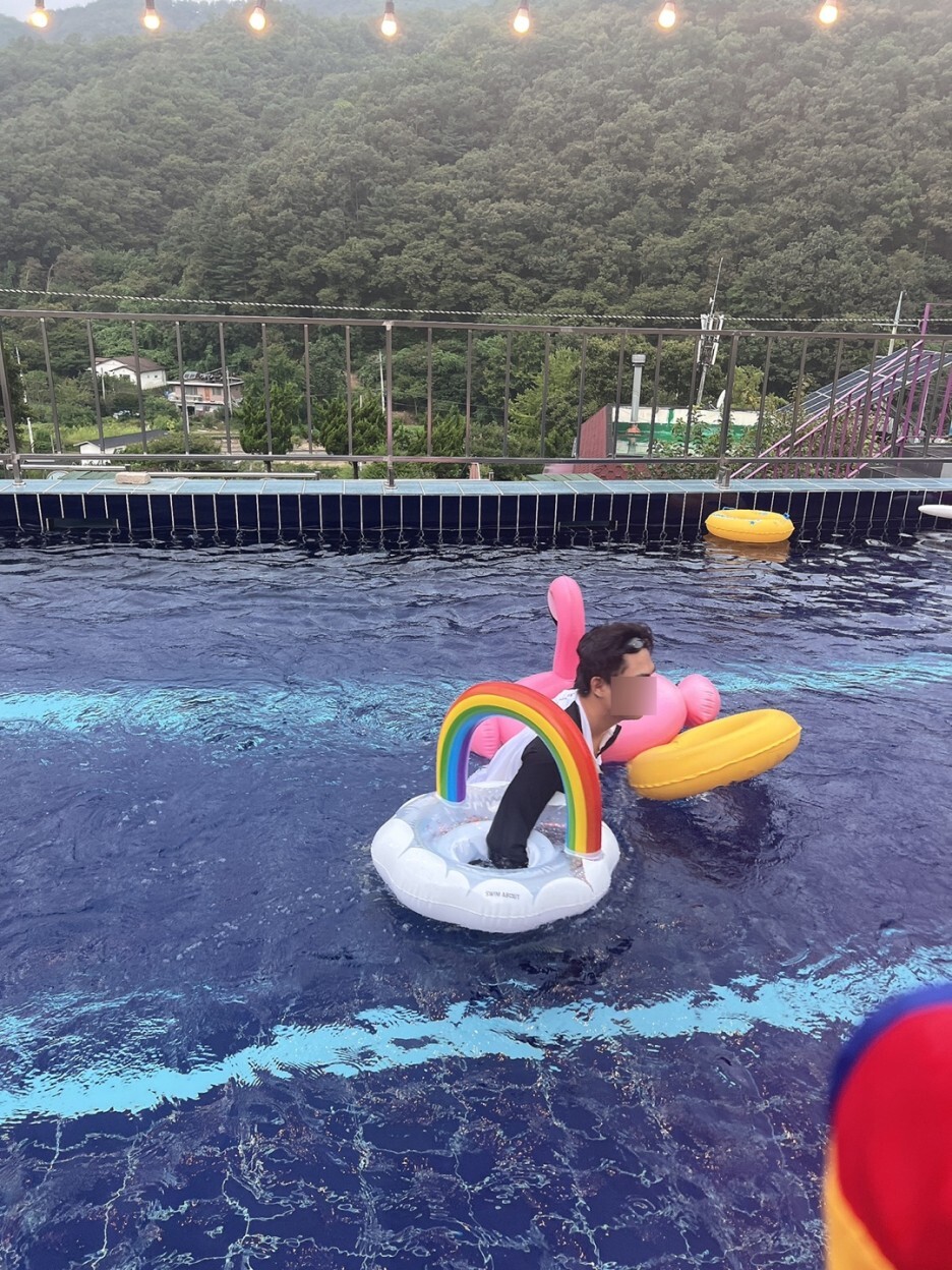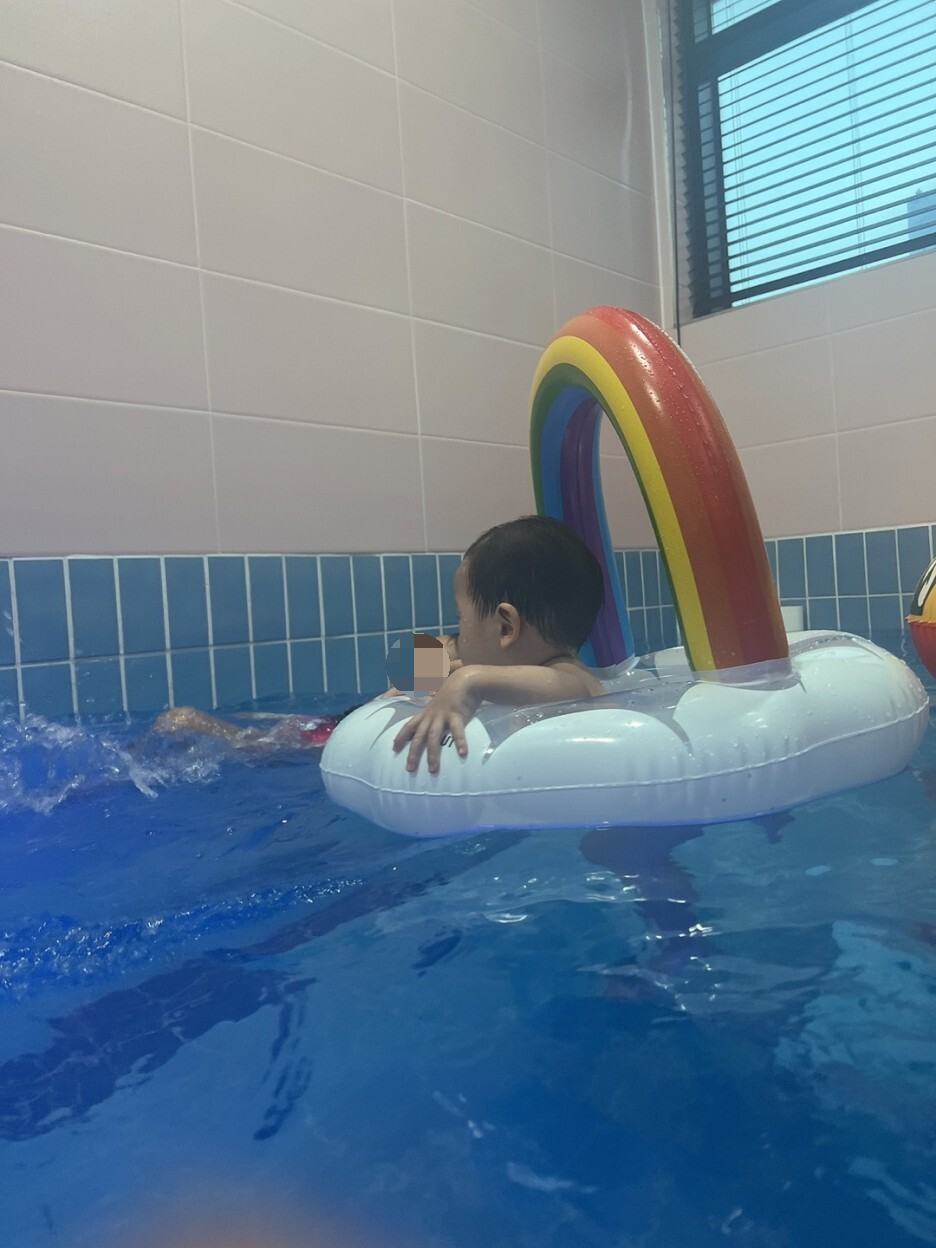 수영장에서 진짜 야무지게 놀았다 ㅎㅎㅎㅎㅎㅎ애기들은 튜브랑 구명조끼에 둥둥둥