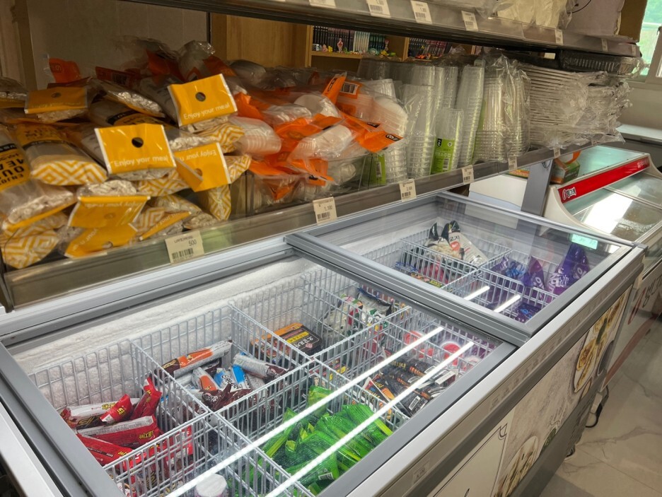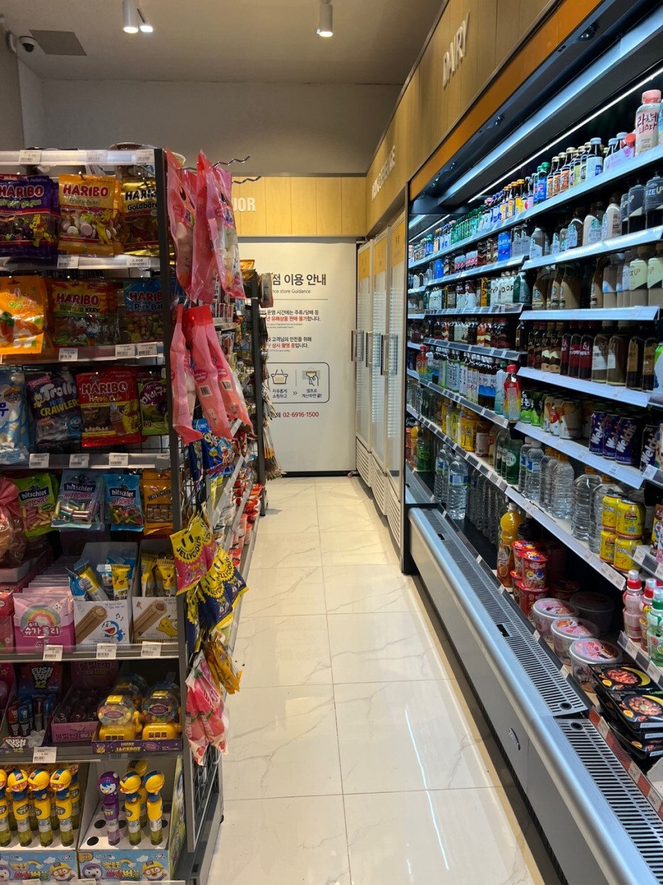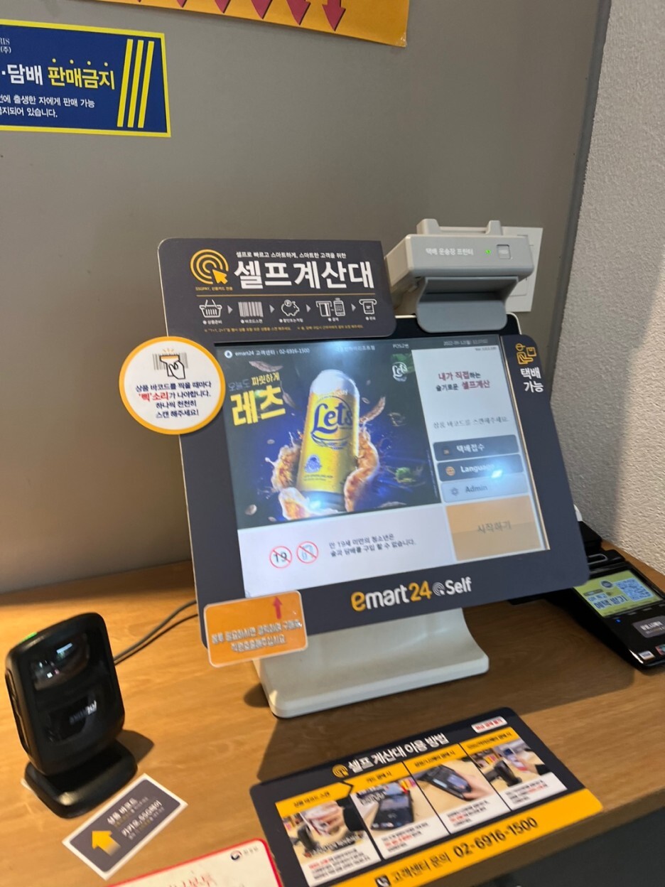 이것저것 잔뜩 산다음에 무인 계산대로 계산 슈슈슈슉
