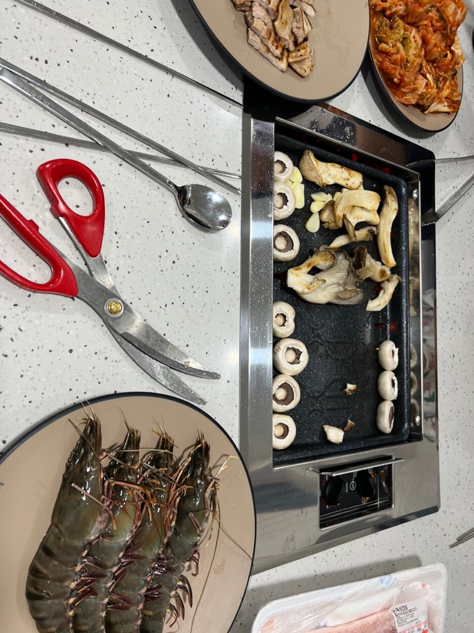 새우부터 삼겹살 한우 소고기 아주 종류별로....거기에다 떡볶이!!!소고기무국!!!!!! 라면까지!!!!!!!!!