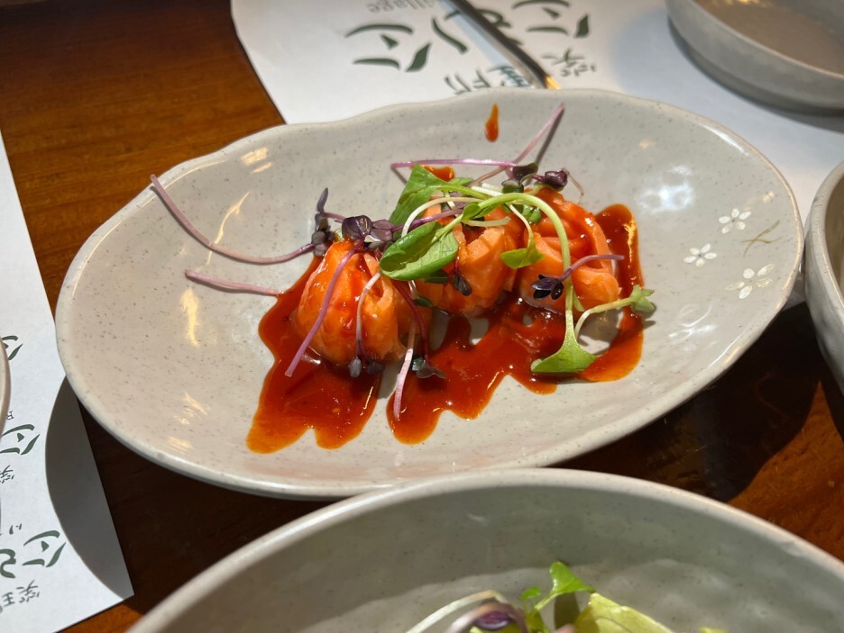 연어샐러드 기름이 없는 냉동연어 초장맛만 나고 물컹..