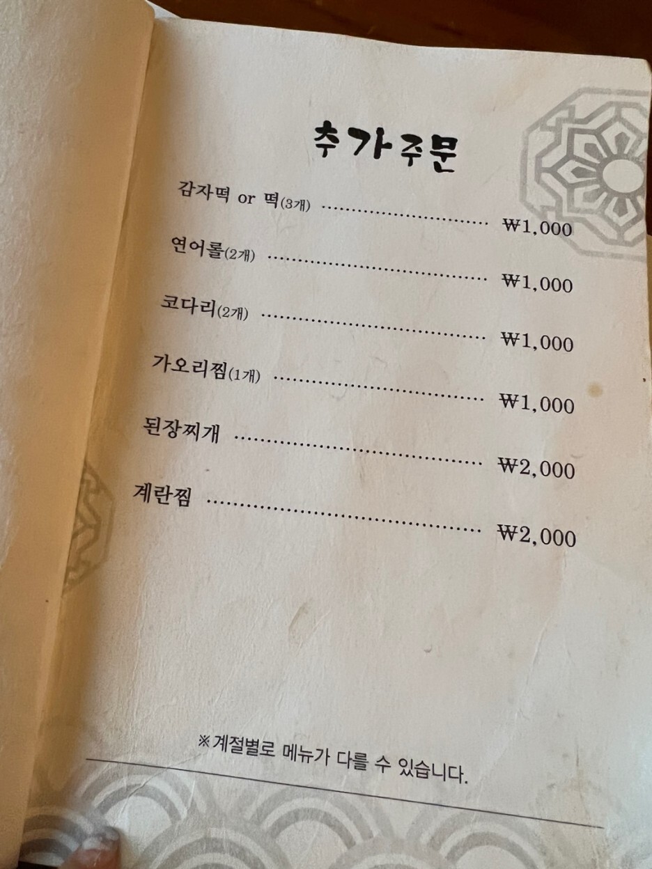 추가메뉴까지 ! 리필이 안되는 반찬은 이렇게 추가메뉴로 주문할수가 있다.
