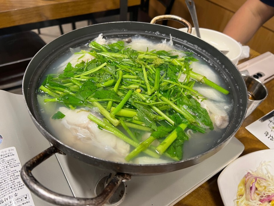 나는 메기같은 흐물거리는 생선은 잘 못먹는데 속살만 부드러워서 무랑 미나리 국물이랑 후루룩 하니까