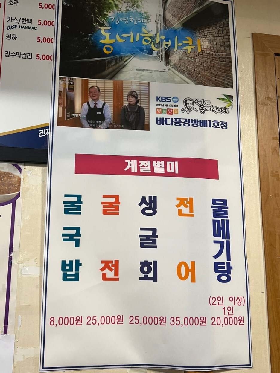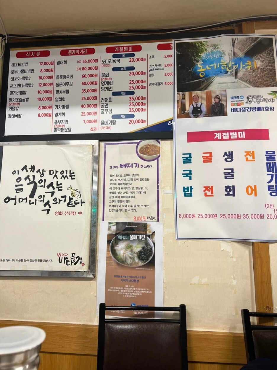 메뉴를 주문하시는데 사장님께서 "우리는 매일매일 통영에서 자연산 수산물을 직송으로 받아와요~