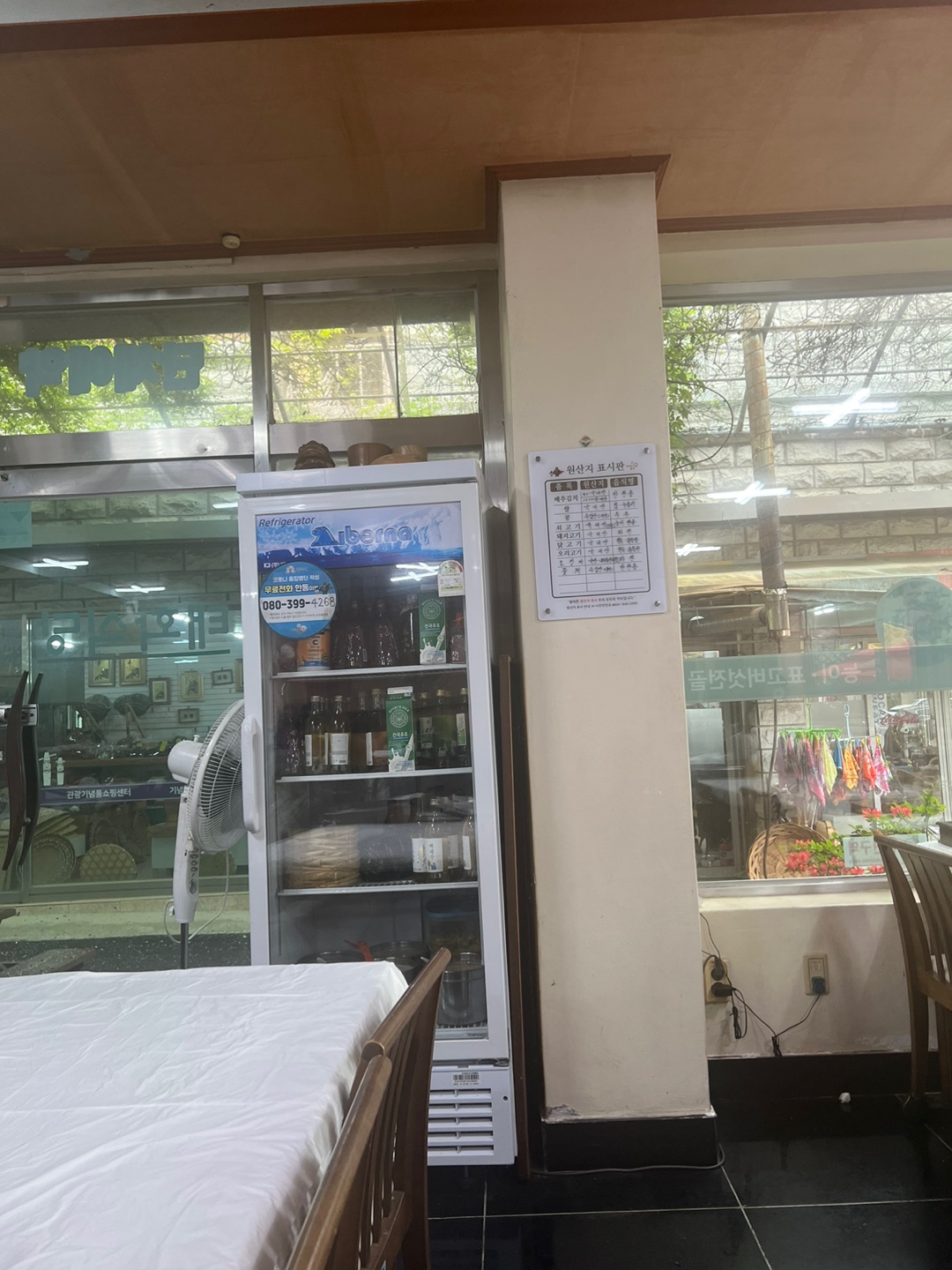 냉장고에는 여러 종류에 술과 원산지 표시판! 국내산 러버이기때문에 다 국내산이라 너무 좋아요~~
