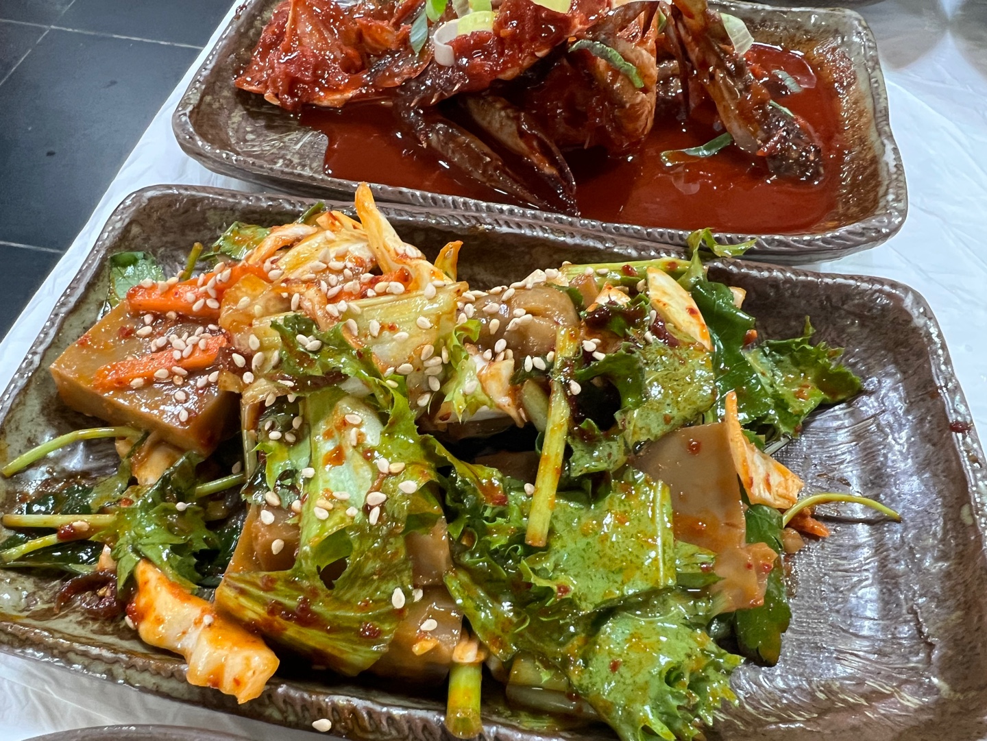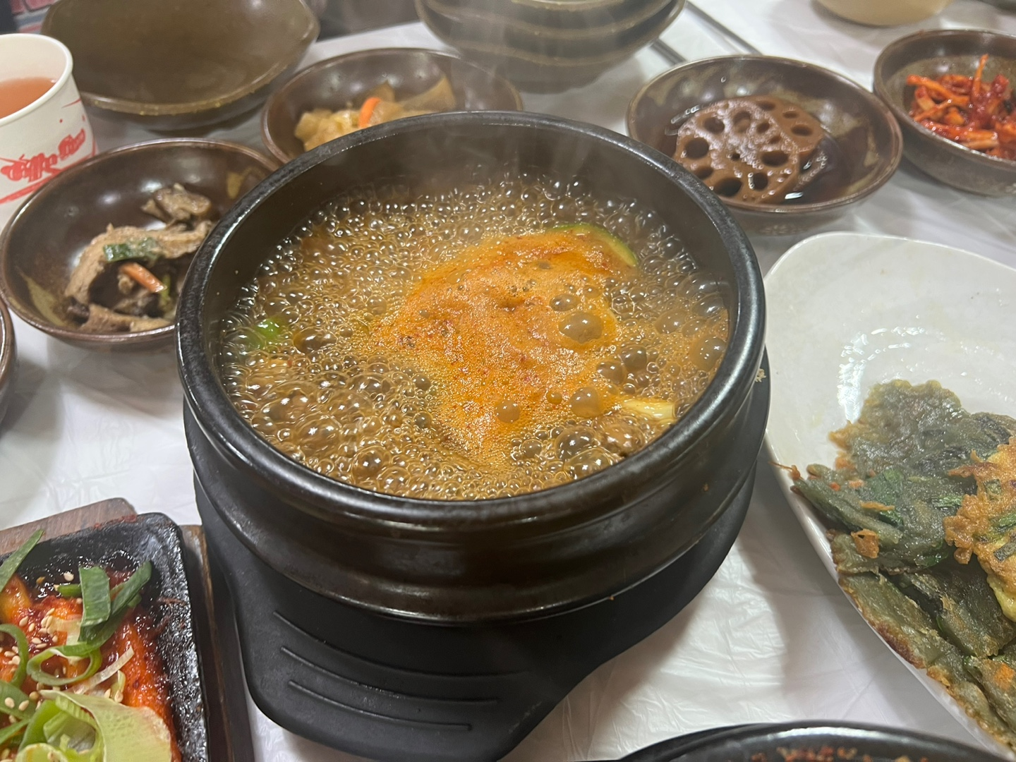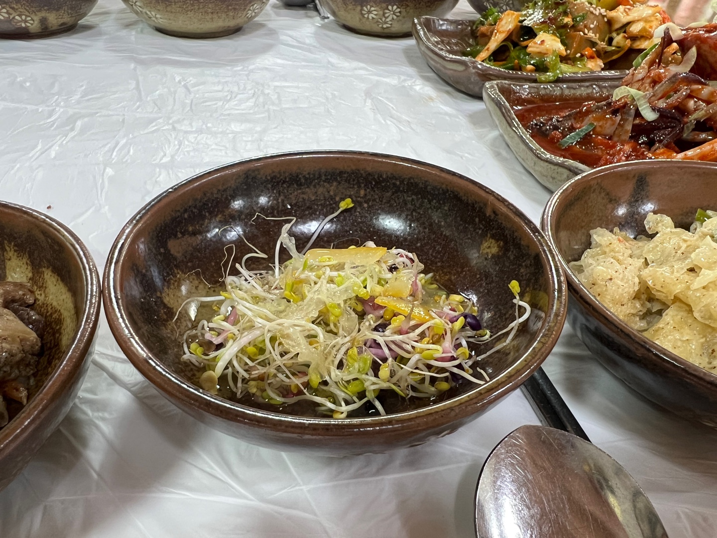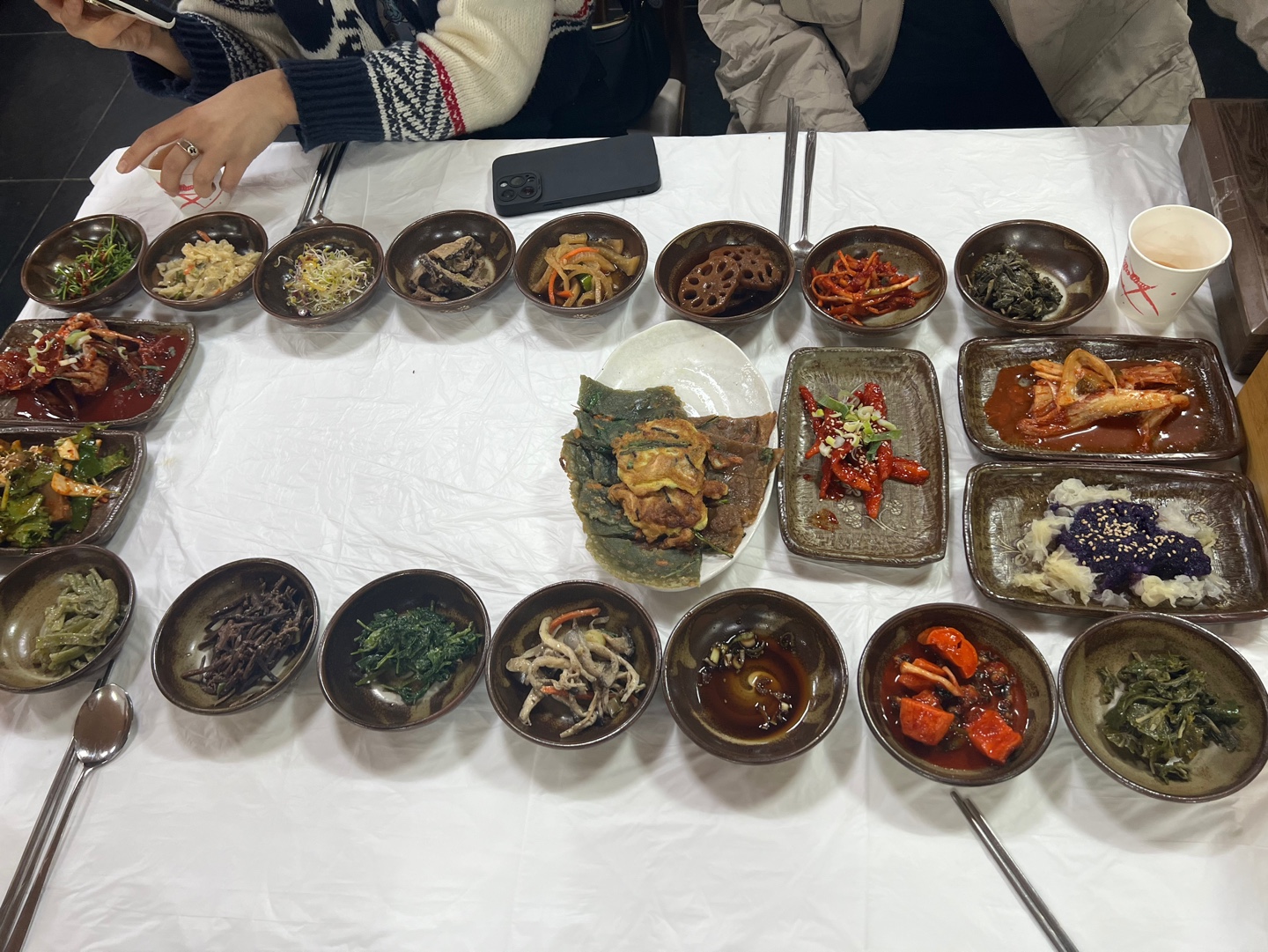 와 주문하자마자 셋팅되는 반찬들 진짜 종류가 어마어마하구나...진짜 21첩이네 ! 테이블이 확 좁아졌다..