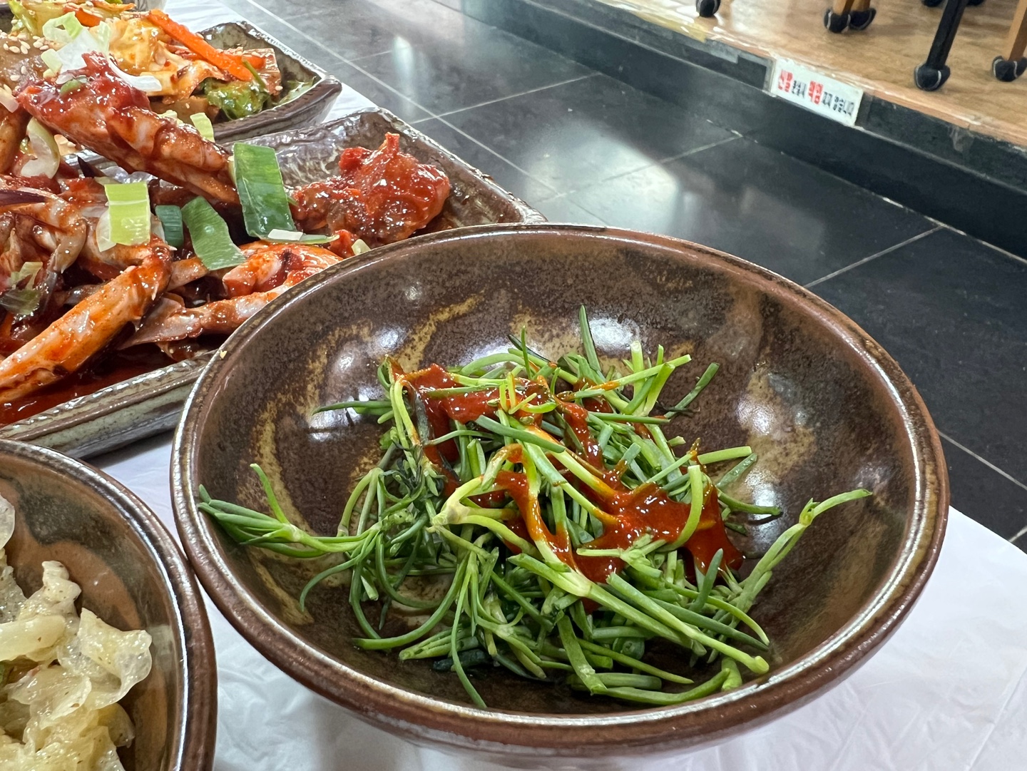 이건 세발나물 무침인데 전남에서 유명한 나물 이라고 하셨다 해남 갯벌에서 자란 나물이라니 너무 신기하당
