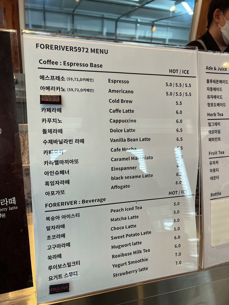 커피부터 스무디 에이드 티까지 마실 종류들이 엄청 여러개가 있었다 ㅎㅎ
