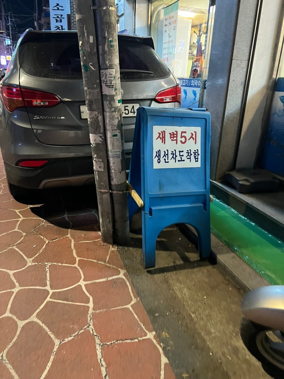 가게 입구 찍으려고 했는데 제일 먼저 눈에띈 새벽5시마다 생선차가 부릉부릉