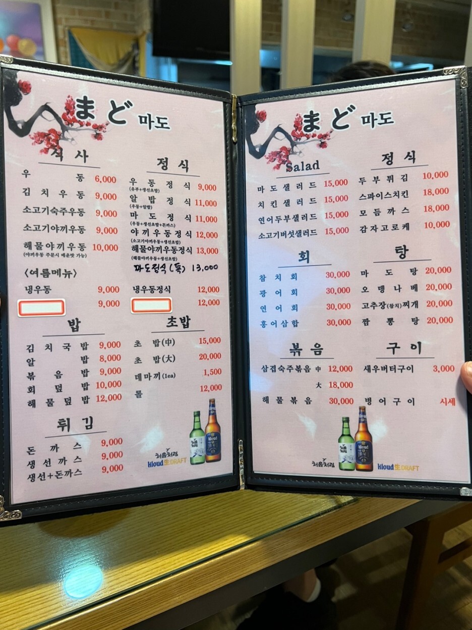 자리에 앉자 마자 제일 중요한 마도 메뉴판!!