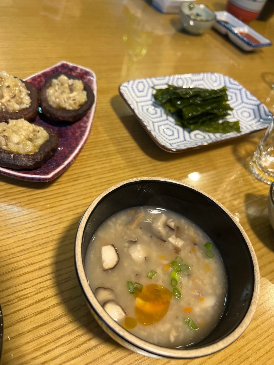 처음은 역시 위를 달래줄 죽!!! 버섯이랑 참기름 향이 고소해서 후루루룩