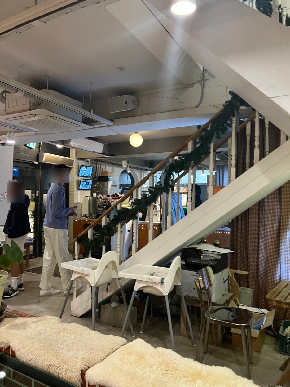 여기는 별관 인것 같았다 크리스마스에 오면 딱좋게 트리랑 장작으로 인테리어 진짜 잘해놨다 2층도 있는것 같은데 별관은 이용을 안해서 패스!
