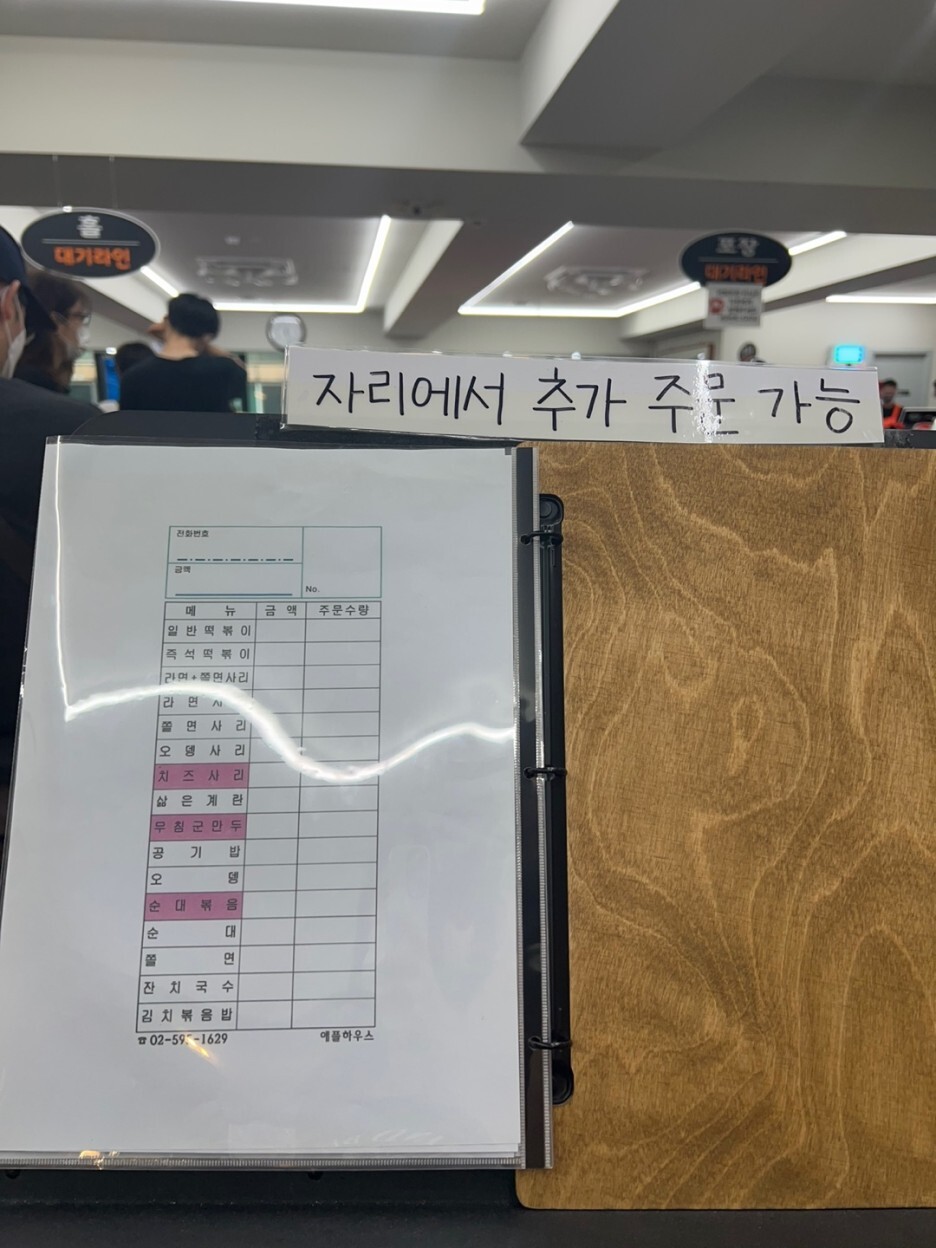 웨이팅시 미리 적어놓으면 자리에 앉자마자 주문한 음식이 나온다ㅎㅎㅎ