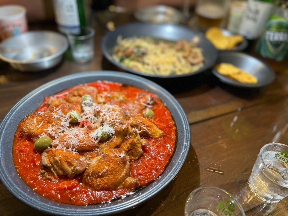 닭다리살도 촉촉하고 올리브와 토마토가 묽지도 않고 안주로 떠먹기 딱좋은???????