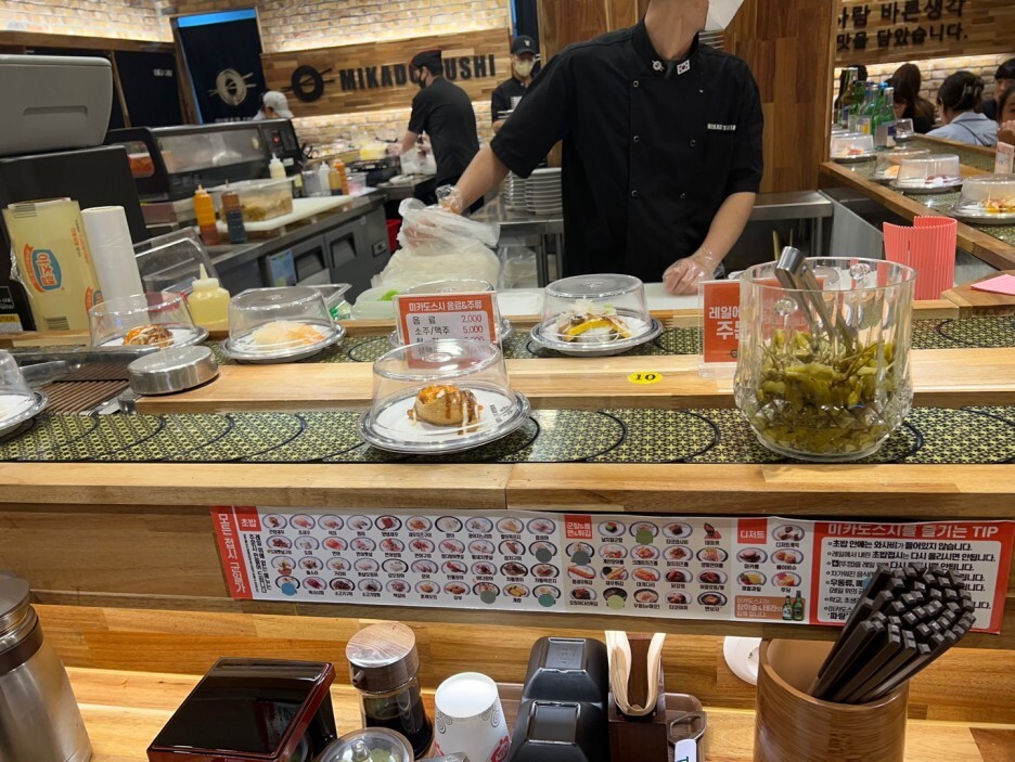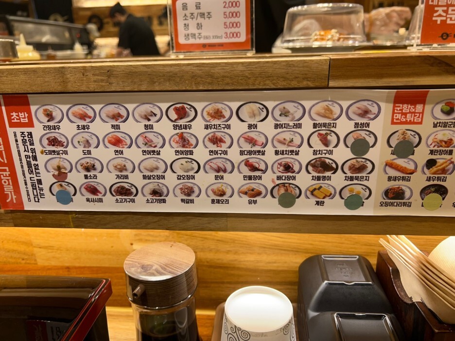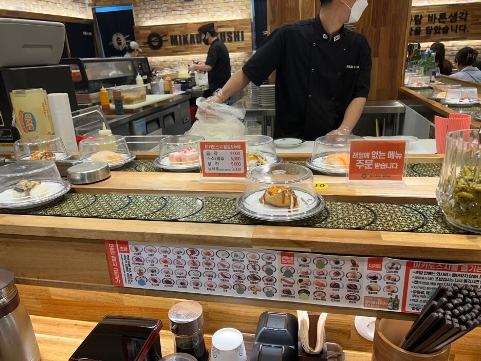 레일에 없으면 메뉴판을 보고 먹고 싶은초밥을 바로바로 시켜서 받아 먹을수가 있어서