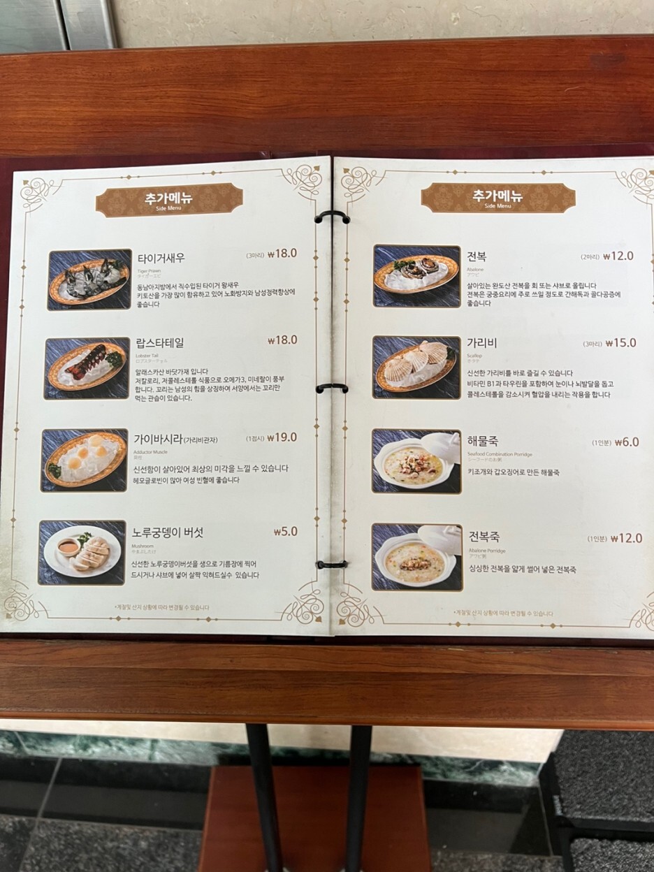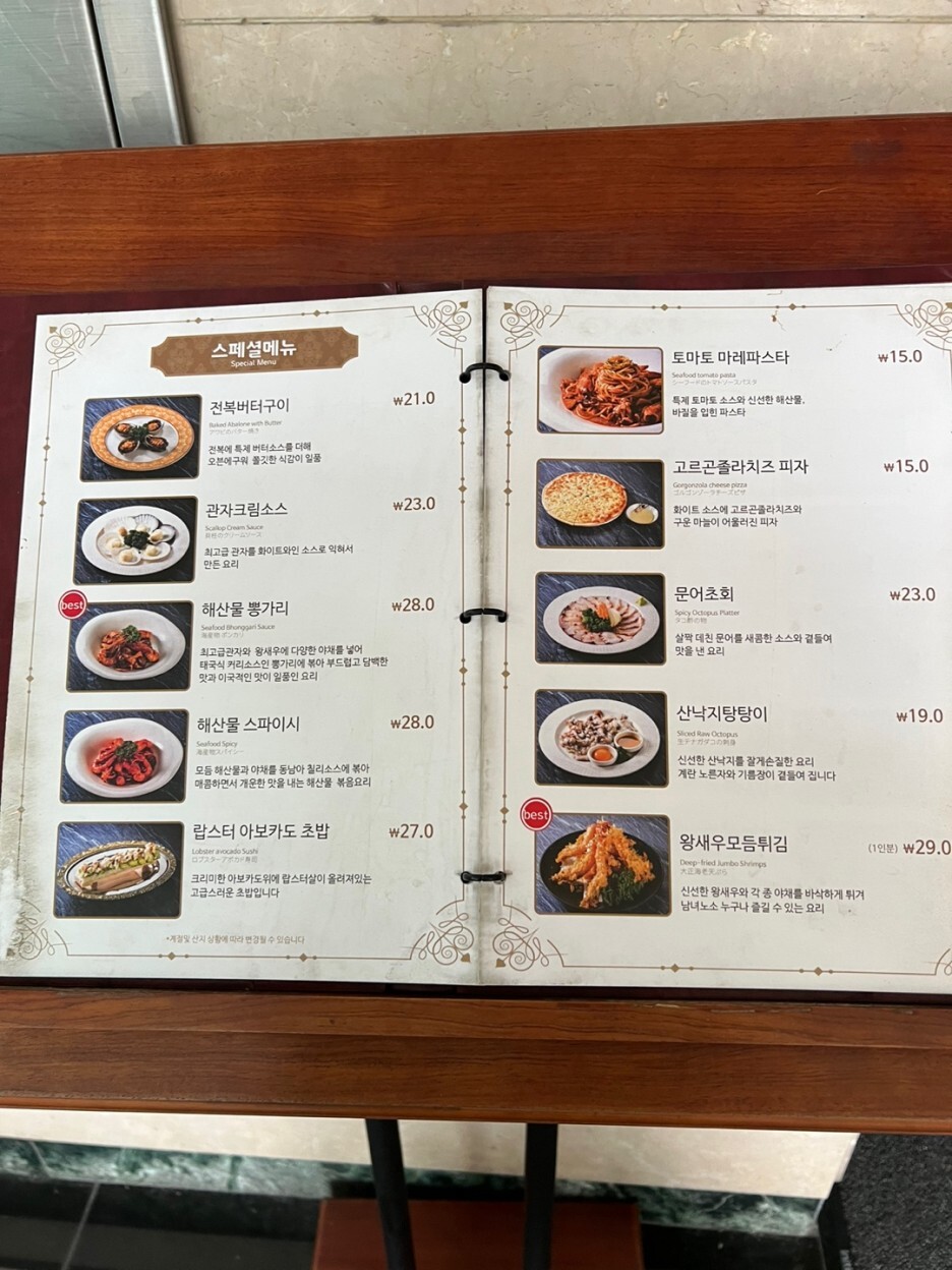해산물 메뉴들도 완전 많고 랍스타까지 있다니 !! 나 갑각류 완전 킬러인뎅~~여기가 바로 천국인것이냐~~