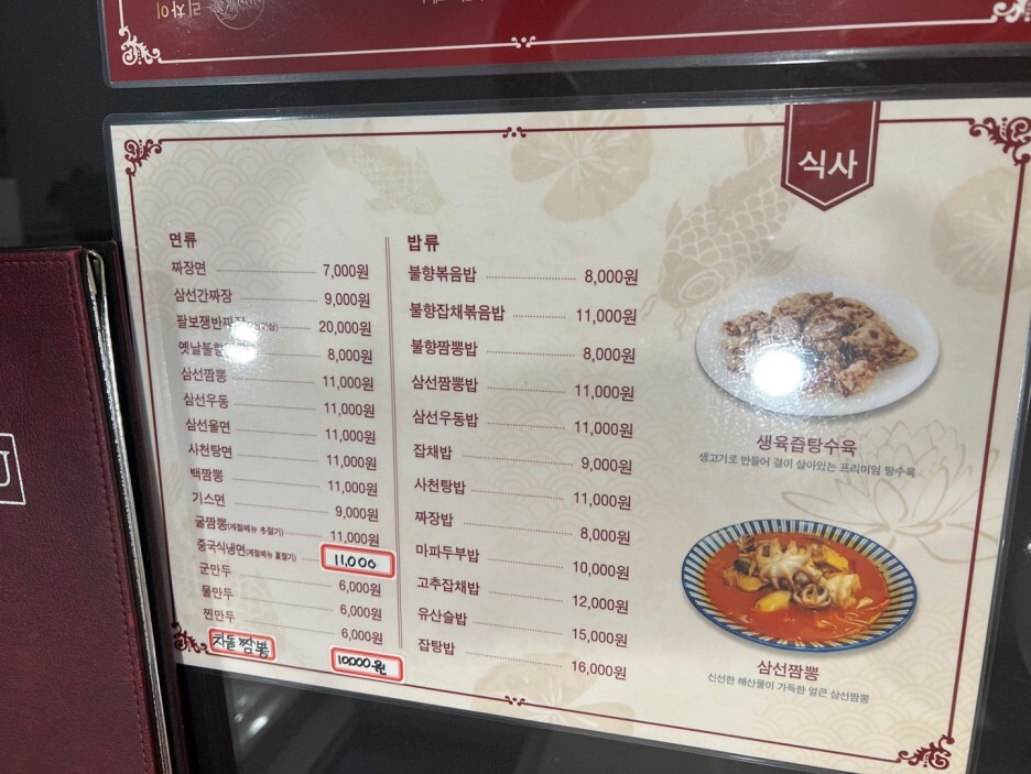 요리만 먹다가 국물요리가 땡겨서 불향짬뽕?을 시켰는데 옴마야